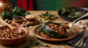 La preparación requiere paciencia y cariño. Primero se limpian y asan los chiles para retirar la piel sin romperlos. Mientras tanto, se sofríe el picadillo con las frutas y especias hasta lograr un relleno jugoso y aromático. Los chiles se rellenan con generosidad, se rebozan ligeramente o se sirven sin capear (según la versión familiar), y se bañan con la nogada recién molida, que debe quedar suave y ligeramente dulce. Se sirven fríos o a temperatura ambiente, nunca calientes, para que los sabores se integren perfectamente.